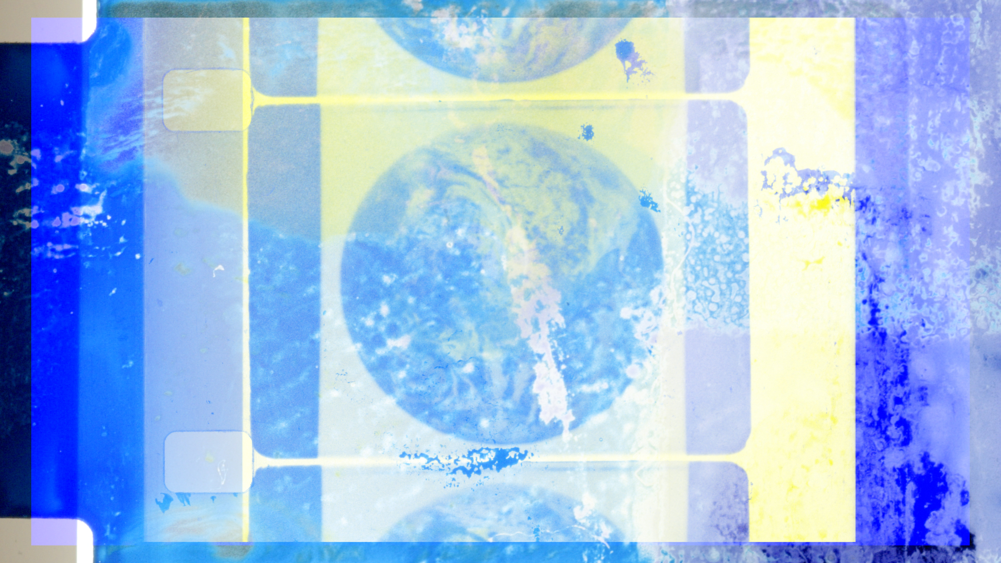 An abstracted 16mm film made with Orwo UN54 16mm film, hand developed & then overlaid with cameraless filmmaking techniques using washi tape & cyanotype. The recurring motifs of the Blue Marble photo & water draining in a sink with the multiple layering of images can be seen as a reflexive statement about the processing of filmmaking & a playful visual pun about water detritus & waste management. The soundtrack was made by Mark Vernon, a sound artist who works with tactility & intimacy of radio, known for his recycling of field recordings & obsolete media. Both the soundscore & visuals use repetitive rhythms to simulate cyclical systems, beit the water cycles, refuge cycles or ways of looking.